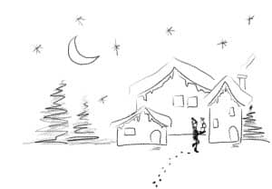 3. Alegem un model ușor de realizat: om de zăpadă, animăluțe cu căciuli de Moș Crăciun (pisici, oi, pinguini, lebede, urși, iepuri etc.), căsuțe înzăpezite, brazi etc. Ideal ar fi să conturați desenul, apoi să îl colorați și apoi să conturăm din nou produsul final.